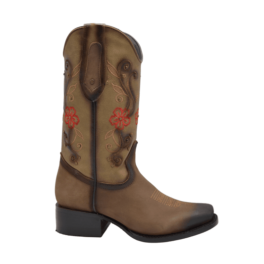1507 Botas Rodeo para Mujer Cafe con Flores Rojas